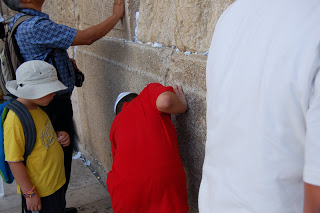 20 minutes into the walk Puppy started crying. Screaming in fact. He was just saying he was scared- but we didn’t know of what. I joked to J that instead of an “I climbed Masada” t-shirt, we would get him an “I cried Masada” t-shirt! I finally got out of him that he was afraid to walk DOWN Masada! OY.