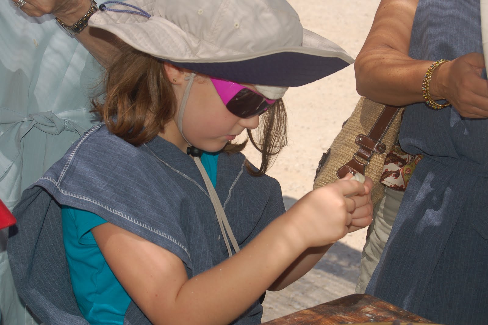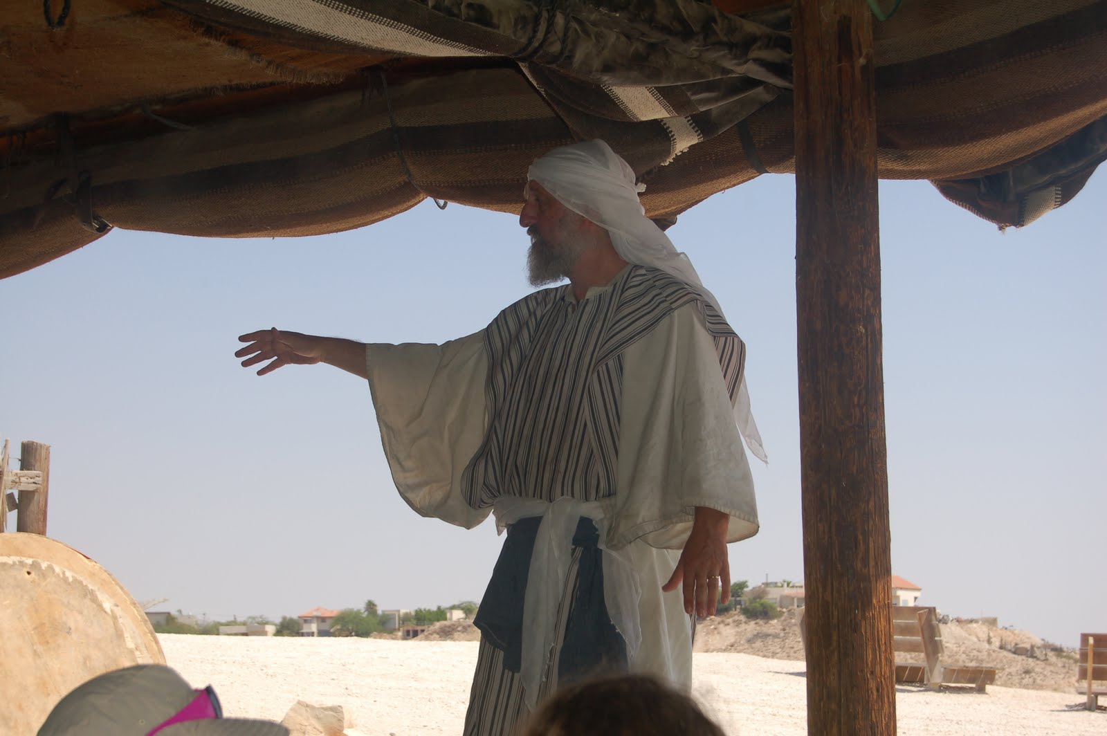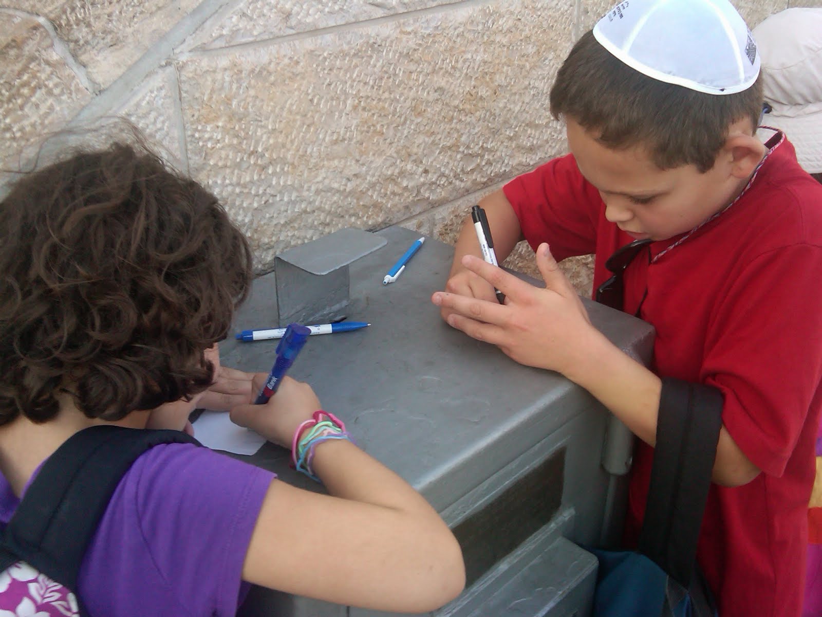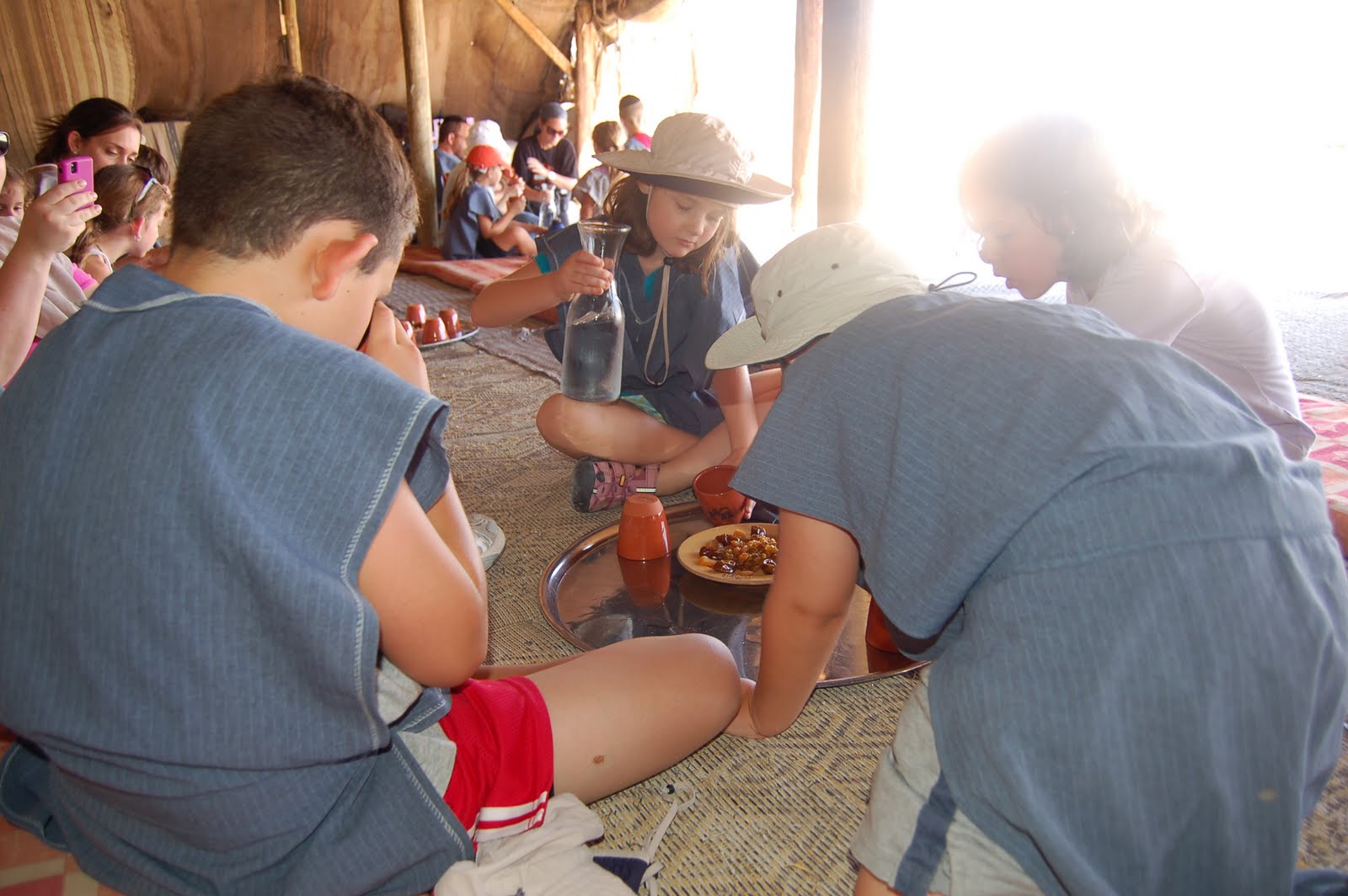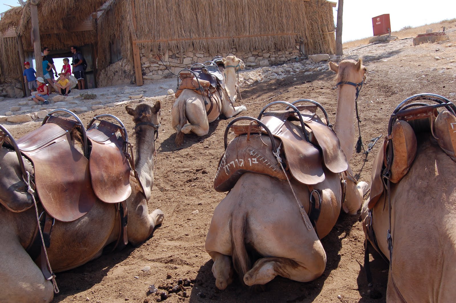The kids liked pouring the water on the model “water system.” Seeing the “sofer” – scribe, writing a Torah in the “Bet K’neset” – synagogue on top of Masada- in an air conditioned room was definitely the most unexpected!