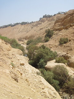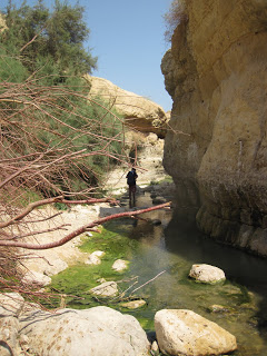 We choose the less traveled area called “Nachal Arugot” – translated to “river of rows” – like in agricultural planting. It isn’t really a river during the summer- it is a “Wadi” – dry river bed.