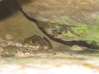 What an amazing oasis it was! A pool of water with cave areas, a waterfall- and wildlife. The kids first found one frog and then a second in a cave off of far side of the pool.