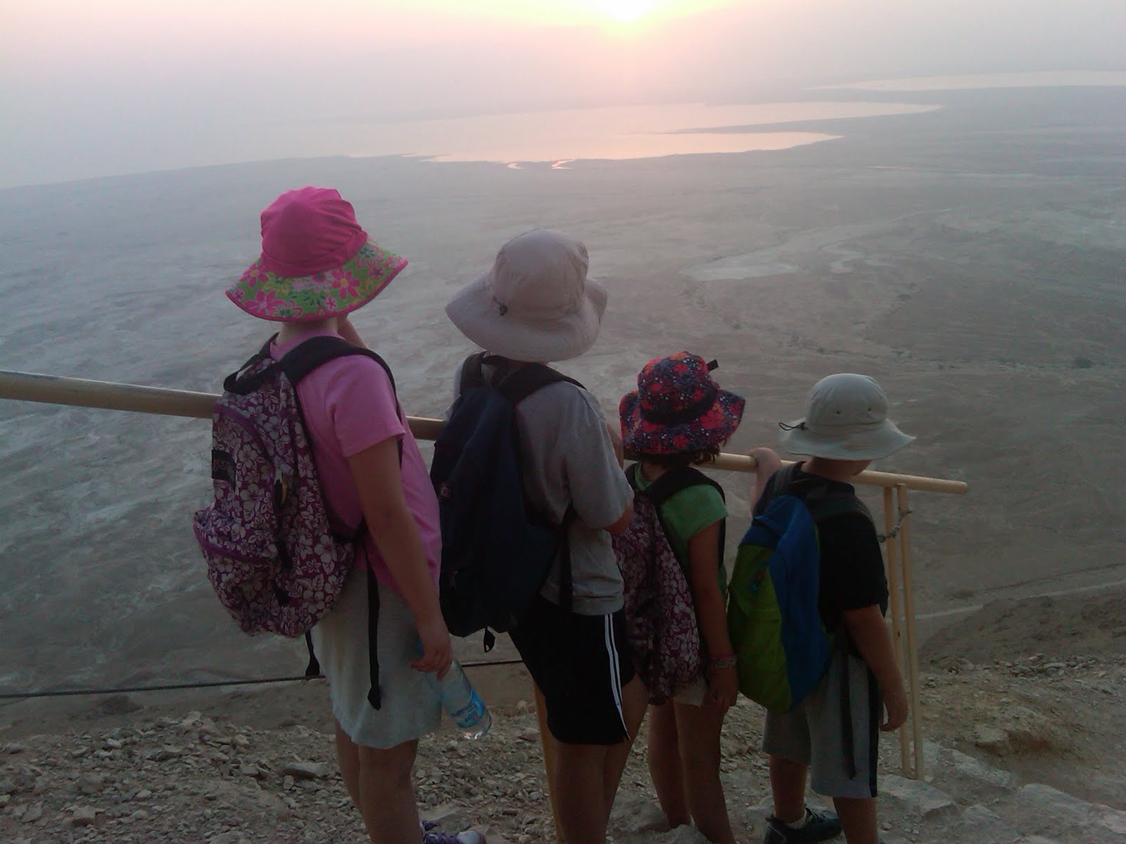 The kids did great getting up and out. We rolled out of bed got our sunscreen on and walked out of our Hostel (kids are calling it a Hospital…I think of it more like a no frills hotel!)…out the door to the base of Masada.